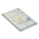 Vintage inspired design with blue and creme colors, floral accents, butterfly accent and vintage handwriting background.