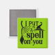 This classic Halloween design features the spooky phrase "I Put a Spell on You" in a bold, gothic-inspired font. The black and white color scheme enhances the eerie atmosphere, making the design perfect for the Halloween season. Accompanying the text are iconic witchy elements, including a pointed witch's hat, a broomstick, a spider web, and a tiny spider, all arranged to create a bewitching composition. The subtle detailing of dots around the text adds a touch of magical charm.