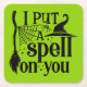 This classic Halloween design features the spooky phrase "I Put a Spell on You" in a bold, gothic-inspired font. The black and white color scheme enhances the eerie atmosphere, making the design perfect for the Halloween season. Accompanying the text are iconic witchy elements, including a pointed witch's hat, a broomstick, a spider web, and a tiny spider, all arranged to create a bewitching composition. The subtle detailing of dots around the text adds a touch of magical charm.
