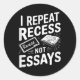 I Repeat Recess Recess Not Essays Classic Round Sticker