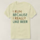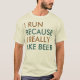 I run because I really like beer saying. In large all caps brown/beige and green/teal fonts/letters. Funny gear for working out and keeping fit.