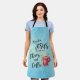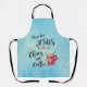 This is a Comical "One of a Kind" Christian Women's Apron! It Features the Comical Christian Words..."I Run On Jesus, Chaos and Coffee" and a Beautiful Mug of Hot Coffee Surrounded by Flowers and Hearts with a Turquoise Background!