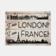 Comical doormat for greeting your unsuspecting guests. They might think twice about stepping on this hilarious entry mat. Even though you really can't see their underwear (hopefully), it's a funny way to adorn an entryway. Cool rustic faux wood finish with a black letter graphic that shows iconic places and things you would expect to see in London and France.