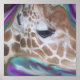 A close up and personal view shot of the profile of a Giraffe custom designed into a poster by Riches of His Glory Photography