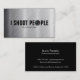 Funny "I shoot people" Professional Photographer Camera Lens Business Card. With Metallic Paper.
