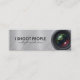I shoot people. Professional Photographer Camera Lens Business Card. With Silver faux Metallic Background.