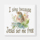 I Sing Because Jesus Set Me Free 2 inch square magnet featuring a bird on a bough of flowers. Christian home decor. Sing all day long. Put a reminder on your fridge that you have reason to be happy. Set the mood with a testimony to friends and family and an encouragement to yourself. Makes a fun friendship gift, birthday gift, housewarming gift, a "just because gift" or purchase for any occasion. Share your faith. Brighten your life.