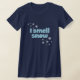 My overall review is that the T-shirt is nice, it fits true to size however the font is significantly smaller than advertised and you can't read it. The printing is unreadable and there is a strain to read it. It does not look like the advertised product. Maybe the shirt color is darker or a larger more visible font should have been used. Photos with and without flash and font is barely legible.