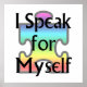 "I Speak for Myself" is printed loud and clear on a pale rainbow puzzle piece. This design has many meanings, and will definitely start conversations. If you are not a number, but a free man/woman/whatever, and speak for yourself, you need this.