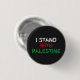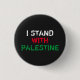 I stand with Palestine white red green distressed grunge text black modern button pin.