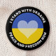 I stand with Ukraine anti war button. Peace and freedom now. Customizable text top and bottom.