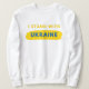 The shirt features the colors of the Ukrainian flag, blue and yellow, and the words "I Stand With Ukraine" emblazoned boldly across the chest. It is a simple yet powerful design that conveys a clear message of support for the Ukrainian people.