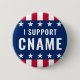 Pinback button badge featuring the text "I support" and your custom candidate name with blue and red stars and stripes borders.
