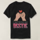 My 11 yo wore adult XL (5’7” 165#). The 8yo is small framed. She wore adult small and tied it in the back. Grandma wore adult large with long sleeve shirt underneath. Tall girl adult medium. Dark haired male adult large. Good quality dark Heather gray, Gildan brand shirt. -it was next up from basic choice and cost about $20 per shirt. Not too thick or thin. Washed and dried well, no major shrinkage. Not see-through. Can wear a bra under it fine. Screen print is just as shown and well done, front and back.