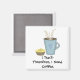 A fun coffee design and saying for a teacher. A blue mug full of steaming hot coffee and a lemon muffin beside it. A cute saying, I Teach Therefore, I need coffee"