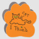 A bad drawing of a cat that is mostly recognisable because of the word "cat" with a handy arrow which explains what the squiggle with eyes is supposed to be. Underneath it says "I Tried" in rough letters. The eyes and dotted i are filled in green. The background is orange.