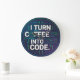 I Turn Coffee Into Code – Funny Progra Large Clock