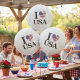 Elevate your patriotic celebrations with this "I ❤️ USA" round balloon! Featuring a bold and clear design with the American flag beautifully integrated into a heart, this eye-catching balloon is perfect for adding a festive touch to any event. Ideal for Fourth of July barbecues, Memorial Day gatherings, election parties, welcome home celebrations for military personnel, or any occasion where you want to proudly display your love for the United States.