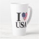 Savor your favorite latte, tea, or hot chocolate in style with this elegant "I ❤️ USA" latte mug. Its sleek, tall design beautifully showcases the iconic "I ❤️ USA" graphic, featuring the American flag within a heart. Perfect for cozy mornings, patriotic celebrations, or as a thoughtful gift for any proud American, this mug is an ideal way to combine your love for beverages and country.