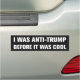 I Was Anti-Trump Before It Was Cool Anti-Trump bumper sticker. Funny bumper sticker for Democrats, Independents, and Republicans who want to see Trump Indicted and put in prison. if you disagree with his policies including tariffs, this is for you.