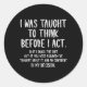 I Was Taught To Think Before I Act Sarcasm Classic Round Sticker