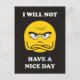 "I Will Not Have A Nice Day" emoji graphic designed by bCreative shows a grumpy emoticon with its arms crossed! This makes a great gift for family, friends, or a treat for yourself! This funny graphic is a great addition to anyone's style. bCreative is a leading creator and licensor of original, trendy designs and properties. ©LCT Creative. License from bCreative.com