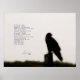 This poetry art piece features an original image and the full text of the poem "i will not wait" by Silvi Alcivar: "I will not wait to become a bird. already i find feathers between the sheets of my bed, dark, iridescent. contrast the sharp yellow eye of a starling, a mallard's wing, a peacock's lady-getters. this morning ravens collected shiny things in my bedroom and offered them at my feet, laughing, as if they too know what each night i am becoming." - silvi alcivar 2010 (© The Poetry Store)
