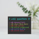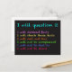 Postcard has a black background with multi-colored text reminiscent of old school house chalkboards.