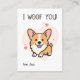This cheerful Valentine’s Day design features an adorable corgi illustration with its signature short legs, big upright ears, and a happy, playful expression. Set against a soft heart background with scattered pink hearts, the design feels sweet, fun, and perfectly kid-friendly. The pun-filled “I Woof You!” message adds a lighthearted touch that makes this design ideal for classroom valentines, school exchanges, or corgi lovers of all ages. A customizable name area makes it easy to personalize, turning this cute corgi design into a memorable and love-filled Valentine.