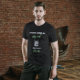 My 11 yo wore adult XL (5’7” 165#). The 8yo is small framed. She wore adult small and tied it in the back. Grandma wore adult large with long sleeve shirt underneath. Tall girl adult medium. Dark haired male adult large. Good quality dark Heather gray, Gildan brand shirt. -it was next up from basic choice and cost about $20 per shirt. Not too thick or thin. Washed and dried well, no major shrinkage. Not see-through. Can wear a bra under it fine. Screen print is just as shown and well done, front and back.