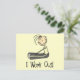 Stick figure t-shirts, tote bags, cards, stickers, mugs, magnets, sweatshirts, hoodies, and more with exercise and fitness theme that you can customize with a name or other text. Text reads "I Work Out!".