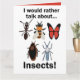 I Would Rather Talk About Insects Funny Quote Card originally designed by Nisha Prabhu. Express your passion for bugs with this charming "I Would Rather Talk About Insects" card! Designed especially for entomologists, this card features playful typography and insect-inspired accents, making it perfect for greeting friends, colleagues, or fellow insect enthusiasts. Celebrate your love for entomology with this quirky and stylish card that’s sure to spark conversations about the fascinating world of insects!