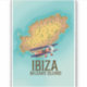 Ibiza Balearic islands map poster beautiful vintage vacation art.