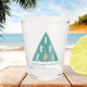 A shotglass featuring a sleek and modern Ibiza logo in light green blueish beach colors, with the option to add your own text i.e. name, club, name, or to leave it blank. This stylish and distinctive accessory element is perfect to demonstrate your love for this special spanish island.