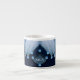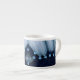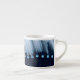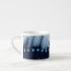 Feathers and diamonds adorn the heart shaped design by ZoeSPEAK on this Espresso Cup. This original photo montage was made from Zoe’s original photograph of a wood stork and uses a closeup of the bird's white feathers, which lie over black plumage. The background below the feathers looks like a dark blue fabric flecked diagonally with neutral tones. Sparkling ice blue diamonds highlight the edges of the feathers and decorate the lighter blue shape in the center, which has a monogram in white letters set to be personalized. There is a pale aqua blue tint over the entire image, adding soft colors to the feathers and diamonds.