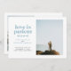 If you have made the decision to elope instead of waiting for a postponed wedding date, share your big news with this elopement announcement card. It features ice blue and dark grey text and space for a single vertical photo on the front as well as space for the date and location of your elopement. The back of the card has space for another photo and a personal note.