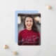 Your graduate will shine on this single photo graduation announcement. It features a full-bleed photo with light blue faux foil script over it. The graduate's name, year and school name are all editable.