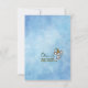 This hand-painted card features a flying fairy bringing a new baby to a whimsical village filled with "fancy" blue houses, friendly forest animals, and a cheerful snowman.