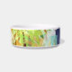 This is a heavy, durable bowl decorated with Tibbies of many colors, the perfect size for hungry/thirsty Tibs. The design is interesting and printing clear.