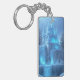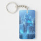 Keychain of a magical castle made entirely of ice. A frozen waterfall descends from the keep's foundations to become icicles at its end. Pine trees flank the castle as the Sun refracts through the ice creating beautiful blue lights that seem to come from the heart of the keep... maybe the frozen dreams trying to break free. The image was generated with Leonardo.ai and altered by me.