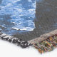 A quality printed throw has its advantages. This is a much finer weave throw than its loopier cousins, and though lighter, it is worth the investment for custom room accessorizing. The back is much prettier than the typical brown, and the fringe on the long sides very vivid, the selvage nicely done. Before photographing, I washed the throw in cold water, delicate, with a thicker woven throw the same size. On tumble dry low, this throw was dry in half the time as the other. This is a very practical quality if you use throws for furniture covers or to wrap up in frequently. The sleekness of the fabric makes it a great layer for accenting or protecting without the feeling of sitting on too much stuff. Perfect for napping or when you feel a light chill coming on. The color printing is beautiful and on this fabric, matched the design and color of my Photoshop image. This is an advantage for blending room fabrics and colors. The fringe on the short sides prints the colors from the design image and therefore varies from the side fringe. I streaked a white fractal line through the plaid pattern to give the illusion of weaving. This printed as crisp as an illusory thread, and put some white in the short side fringe, showing another advantage of print vs loomed- for artistic purposes, line lines, detail, and color integrity can be planned and preserved. My loomed throws have color limitations and more of a needlepoint texture. Print throws reproduce an exact image. The throw felt a little stiff straight out of the package, but this went away in the first delicate wash. Of course I searched the wash water for ink or bleeding and there was none.