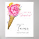 This ice cream-themed bridal shower is decorated with watercolor florals and an ice cream cone. The text says "She's been scooped up!" in stylish pink script typography. Watercolor ice cream with flowers and fruits.