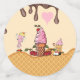 Kid's ice cream birthday party plates with ice cream cone character and a milkshake character. Ice cream cone with chocolate dripping in the background. Also good for an ice cream social. This has matching invitations in my store.