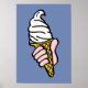 Ice cream cone in a cartoon pop-art style design on a blue background. Big bright Ice cream cornet motif graphic on a poster.