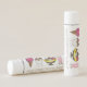 Lip balm features an original illustration of an ice cream cone, hot fudge sundae, banana split and strawberry milkshake. Ideal for a restaurant, cafe, or ice cream shop.