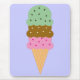 This design features a triple scoop ice cream cone (strawberry, chocolate white chocolate chip and mint chocolate chip) on a light purple background. Background color can be changed by clicking on "Customize It."