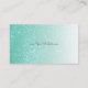 This lovely business card features a teal colored glitter gradient background on both sides of the card. The glitter is more dense on the left portion of the card, and gradually fades towards the right. On the right side of the card is a glitter design ice cream cone.