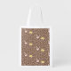 I own a lot of reusable grocery bags, but this one holds its box shape and simply stands up on its own even if there is nothing in it. Its stiffer than your regular reusable bag too, and the material is water resistant. I poured water on the exterior and it didn't penetrate inside to the other side. I'm buying a couple more. Wish I knew how durable these bags were or I would have purchased a few more with my initial order. I also like how it folds and buttons up when not in use, making it easy to put into a handbag or luggage. I haven't used this bag yet, as I purchased it for travel use, like when you're at the airport and need to small sturdy bag to place any airport purchases in, like food, souvenirs etc. I can tell you when you first see this bag, it looks very cheap, but after closer inspection of the material and the seams its a very sturdy reusable bag. I tested it out by putting some really heavy objects inside and I could not observe any stress to the bag at all. Another thing I like about it, is the fact the medium size that this is makes it easy to just carry it in your hand without the bottom of the bag scraping the ground, like most other bags do when you're short. That alone, deserves 5 stars. I just wish there were more colors to choose from! The PDX Airport Carpet printing looks just like the photo, and using this bag during travel might be a conversation piece when/if a native from Oregon happens to see it.