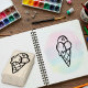 Cute ice cream art stamp. Summer vibe and delicious memories radiate from this simple line art ice cream cone illustration. Use in food and summer fun related art and crafts projects.