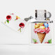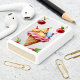 A Zippo lighter with a rose gold finish, featuring a watercolor-style illustration of an ice cream cone topped with cupcakes and cherries. The cone is a light brown with a waffle pattern, and the ice cream is a swirl of pink, yellow, and blue, each topped with a cherry. Additional cherries with stems and leaves are scattered around the cone. The background is a light, textured white. The style is reminiscent of a delicate watercolor painting, with soft edges and a light, airy feel.